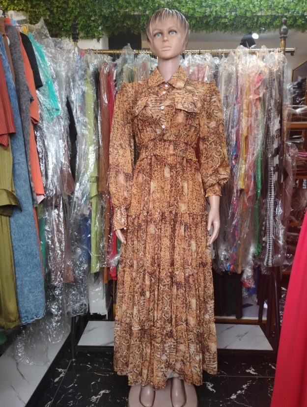 Be the first to review “Brown Snake Print Maxi Shirt Dress for Women – Long Sleeve Button-Down Dress with Collared Neck”