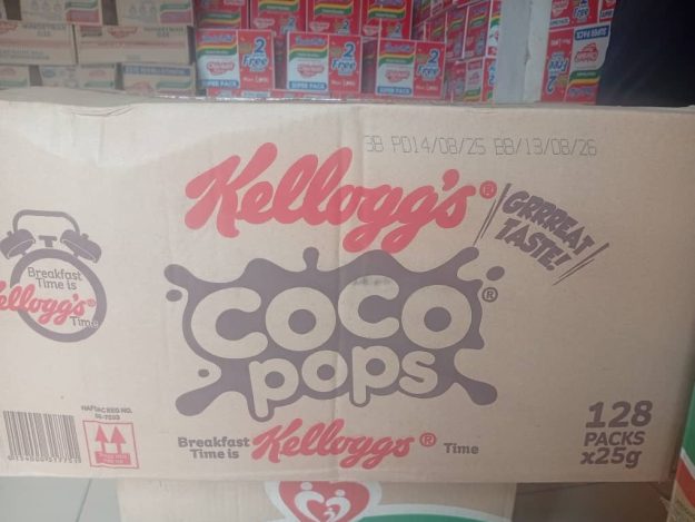 A Kellogg’s cereal variety pack containing 28 individual single-serving boxes (each 25g). This pack offers a convenient way to enjoy a variety of Kellogg’s classic cereals, perfect for quick breakfasts or snacks.